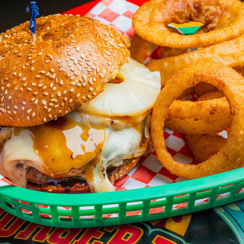 Burgers big enough to share! Onion rings were crispy and not greasy. We will definitely be eating there again.