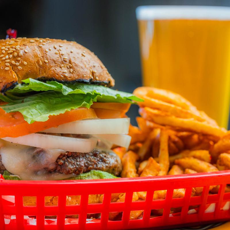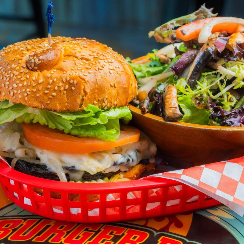 All burgers are 1/2 pound California-grown Harris Ranch beef. Served on a sesame bun and comes with your choice of French fries or spring mix salad.