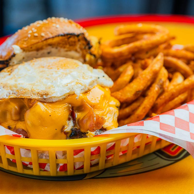 Fried egg, bacon, American cheese, and mayo