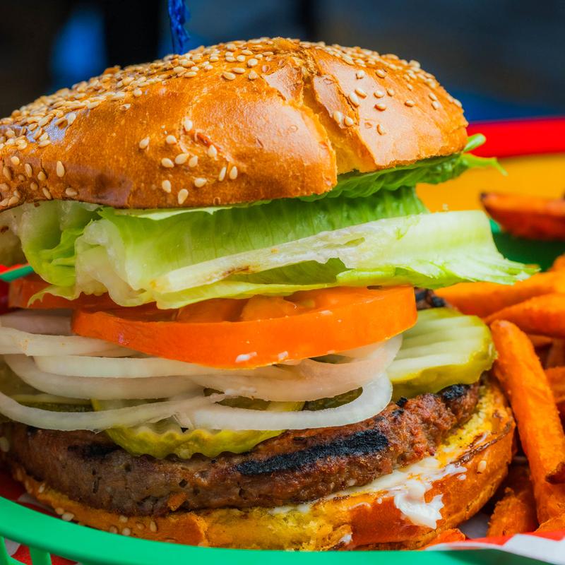 1/2 pound Harris Ranch beef with lettuce, tomato, onions, pickles, and mayo