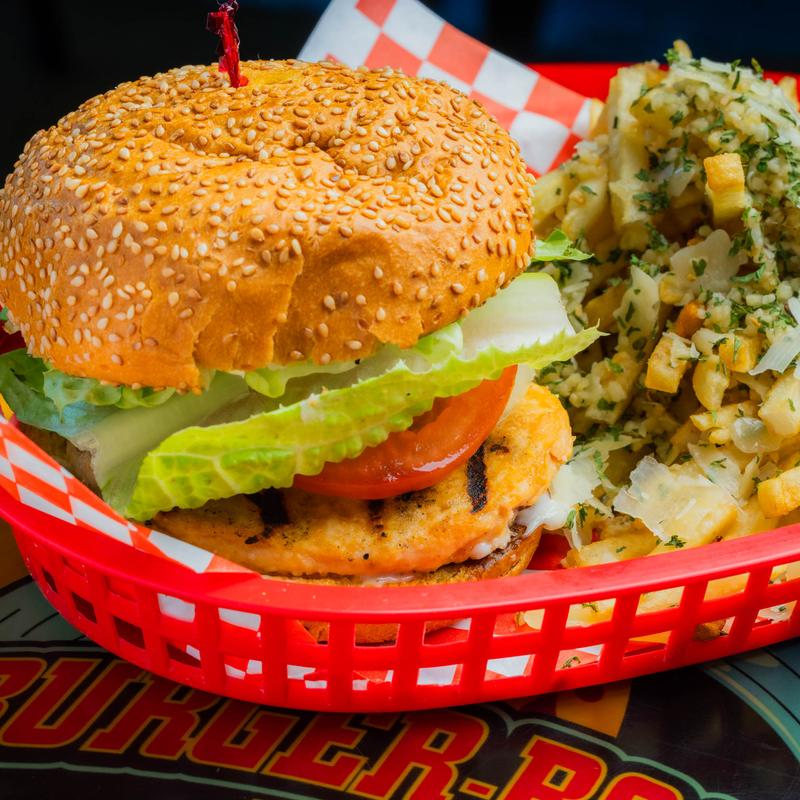 Grilled with Pepper Jack cheese, lettuce, buffalo sauce, and ranch on a bun